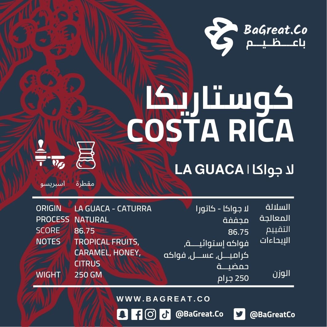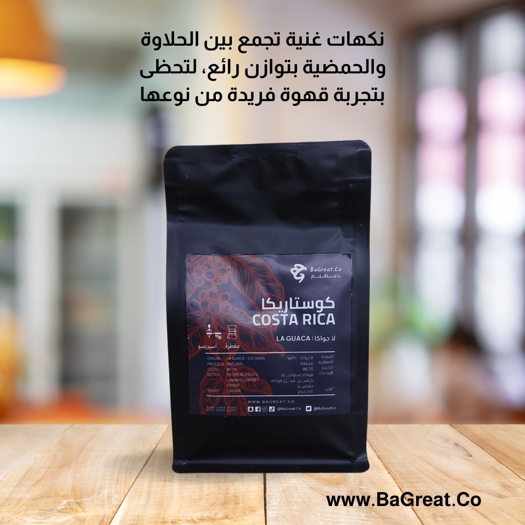 استمتع بنكهة استوائية ساحرة مع قهوة كوستاريكا - لا جواكا. تأتي هذه القهوة من مزارع لا جواكا الشهيرة، وتُزرع بعناية لتقديم تجربة مميزة. بفضل المعالجة الطبيعية، تتألق هذه القهوة بمزيج من النكهات التي تشمل الفواكه الاستوائية، الكراميل، العسل، ولمسات منعشة من الحموضة.